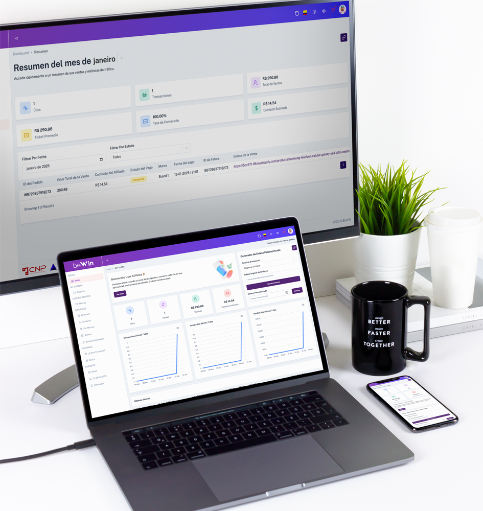 Plataforma de Marketing de Afiliados Colombiana, desenvolvida em React e NodeJS e hospedada na AWS.